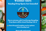 With a wind chill advisory in effect for Tompkins County, Food Scraps Recycling Drop Spots are canceled for Saturday, Feb. 7. Canceled locations include Danby, Dryden, East Hill Plaza, Groton, Lansing, Newfield, the Tompkins County Highway Department on Bostwick Road, and Trumansburg.